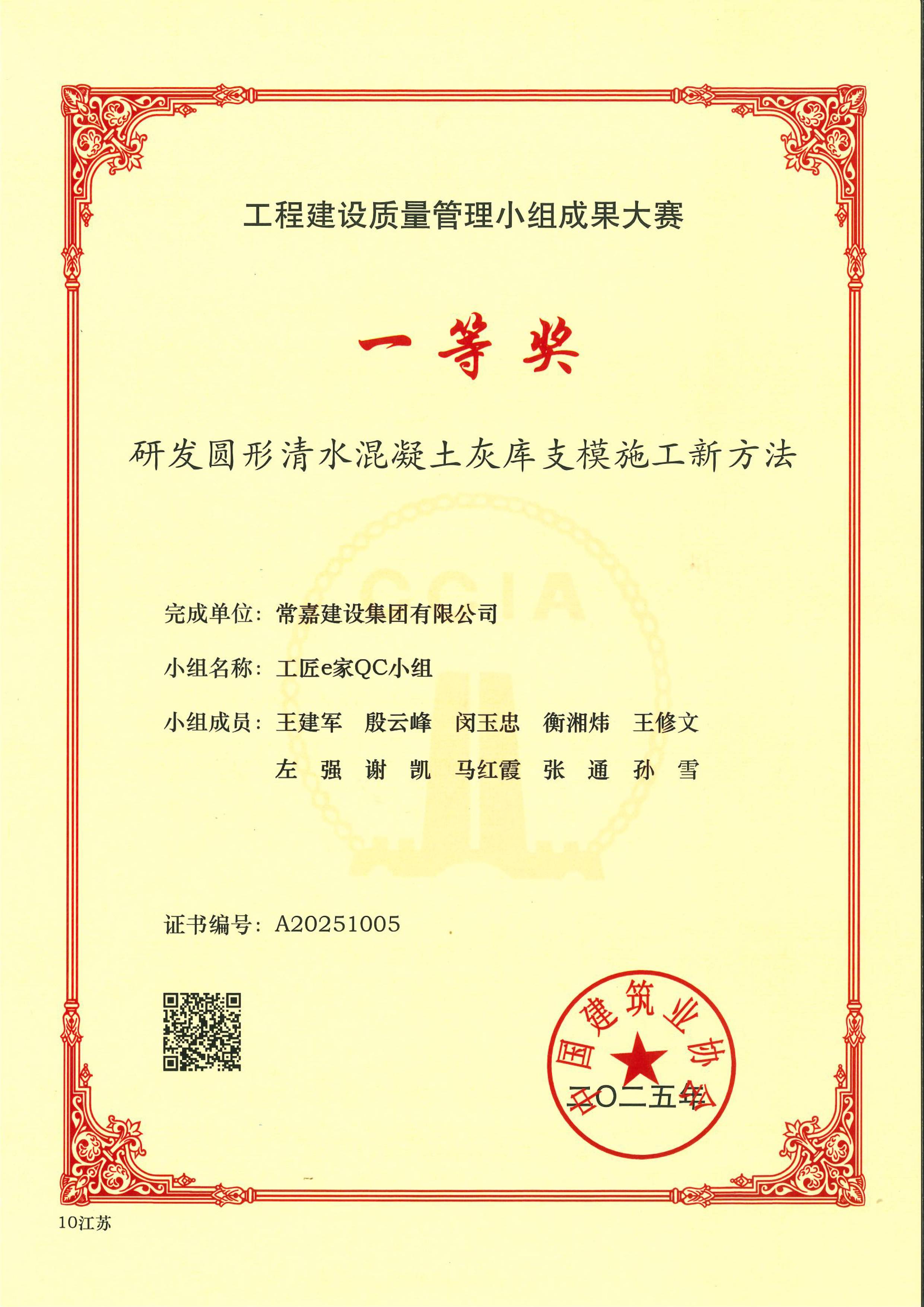 2024年度江苏省工程建设优秀QC小组二等奖——超高超长清水混凝土防火墙模板施工方法创新
