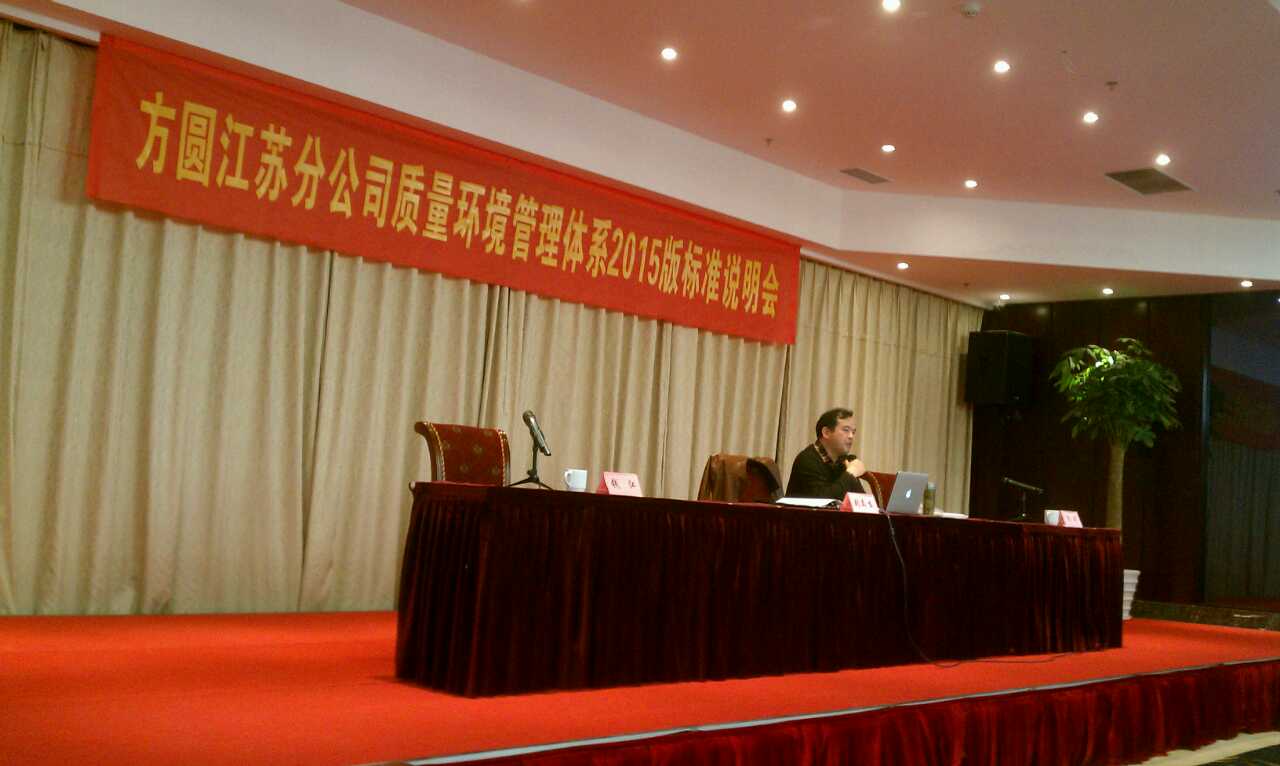 2014年12月11日,方圆标志认证集团有限公司江苏分公司在江苏国瑞大酒店举办首次2015版ISO9001、ISO14001标准换版说明会,公司管理者代表专程赶赴南京参加了本次会议。