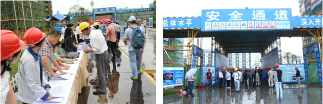 现场观摩活动原定于13:30开始,阴雨连绵的天气无法阻挡同行们取经学习的热情,12:30起就陆续有单位进场参观,公司工作人员及项目部骨干不得不放弃午休,提前站位进入接待状态。当日天气阴晴不定,时而暴雨如注,时而雨住天晴,工作人员为确保观摩接待工作正常开展,配合主办方做了大量工作,冒雨维持秩序,引导和疏散人流,安排临时转移会场和会议物资,任由身上衣物湿了又干,干了再湿。