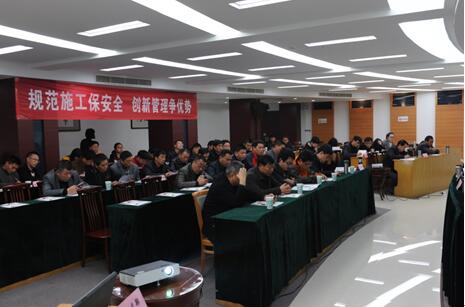 本次会议目的在于:进一步加强公司施工管理水平,确保企业全年安全生产目标及技术管理创新的实现。会议通报了节后复工检查情况及节后公司安全生产以及春风行动工作安排,下发《2016年度在建工程创优工作目标》、《工程管理办法2016版》等公司新版文件、资料。公司安监部向大会通报了2016年度安全生产管理新举措:年内将依据综合大检查标准,对各在建工地开展月度考评打分和季度考核平均排名,加大监督力度,按章依规兑现奖惩,全力以赴保安全。公司生产副总张建凯要求工程条线全体管理人员以及各项目部切实抓好2016年初在建工程安全生产工作,进一步落实各自安全生产责任,进行在建工程现场隐患排查、专项治理,不走过场、不走形式,消除隐患,保障节后复工的施工安全。公司总经理李学鹏强调:“安全生产重于泰山”、应该常抓不懈。