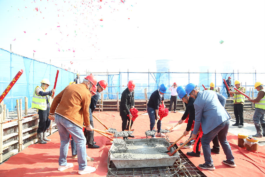 上午9时08分,吉时启幕,封顶仪式正式进入核心环节。嘉宾们移步屋面浇筑区,手持金铲共同铲下象征希望与圆满的混凝土,完成关键浇筑,标志着项目主体结构顺利封顶。现场气氛热烈,礼花绽放、掌声雷动,这一刻,每一滴汗水都化作了楼宇的坚实脊梁,每一份坚守都凝聚成项目的蓬勃生机。