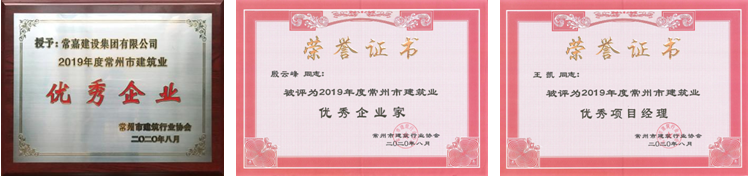 2020年9月18日,在刚刚结束的常州市建筑行业协会六届三次会员大会上,常嘉建设集团有限公司荣获协会颁发的“2019年度常州市建筑业优秀企业”称号,公司董事长殷云峰荣获“2019年度常州市建筑业优秀企...