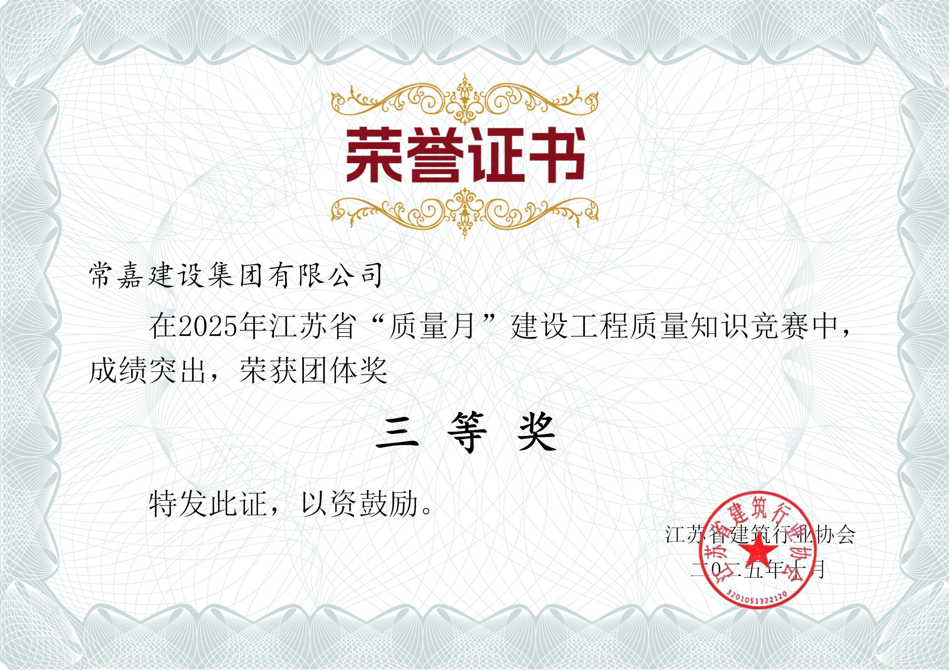 2025年江苏省“质量月”建设工程质量知识竞赛团体三等奖