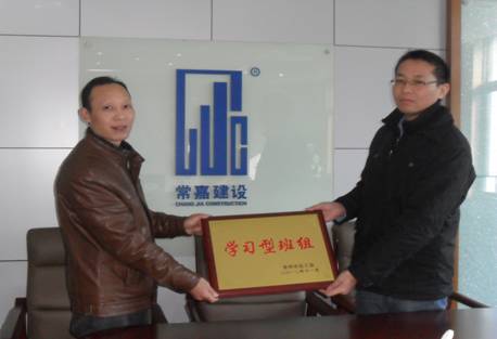 11月29日,天宁区茶山街道总工会代表市总工会来公司对我公司唐克飞项目部刘金巴瓦工班授予“市学习型班组”牌匾。