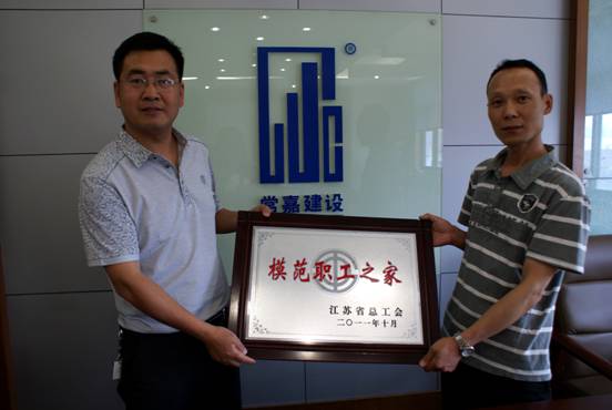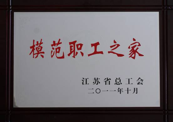 2011年我公司被江苏省总工会授予“江苏省模范职工之家”荣誉称号。5月7日,区总工会专程来公司授牌。