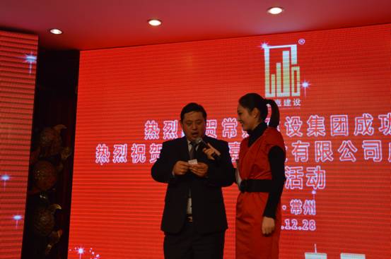 上午的庆典大会在祥和喜庆的气氛中顺利结束。大会结束后,全体参会人员在酒店举行庆典午宴。午宴过程,公司领导对参会的退休职工进行慰问并颁发慰问金和慰问用品。公司还对年满20年、10年、5年的员工进行表彰,分别授予“金钻员工”、“银钻员工”和“铜钻员工”证书,受到表彰的员工代表发表了感人肺腑的获奖感言。此外,午宴特邀演员为大家表演了精彩的舞蹈和歌曲节目,并串插了摸奖游戏。本年度优秀员工代表、项目经理代表及公司领导分别上台摸奖,为员工创造另一份惊喜和快乐。整场午宴活动喜庆气氛浓厚,形式丰富多彩,让我们共同祝愿常嘉明天更辉煌!