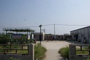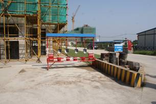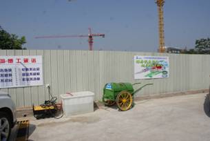 五标段的工地现场虽然仍在紧张施工中,但不见尘土飞扬,处处见绿。原因是项目部在降噪防尘方面也作了许多工作:道路硬化、土地绿化,施工区、生活区和办公区周围都见缝插针地种满了绿草和花树,生活区一侧空地上更开辟了一片绿色无公害菜园,亮紫的茄子、大红的西红柿、碧绿的丝瓜和鲜红的辣椒葱郁一片,不但净化了空气、美化了环境,也保障了蔬菜供应的自给自足。木工作业加工区和混凝土搅拌机等作业区均采用全封闭围档,外面点缀着绿色施工知识与各种警示牌和宣传标语,成为了项目部又一大安全教育和绿色施工的宣传阵地。施工区由双层密目网围护,整个工地用彩钢板围挡有效控制了扬尘问题,也提高了工地的安全保卫力度。