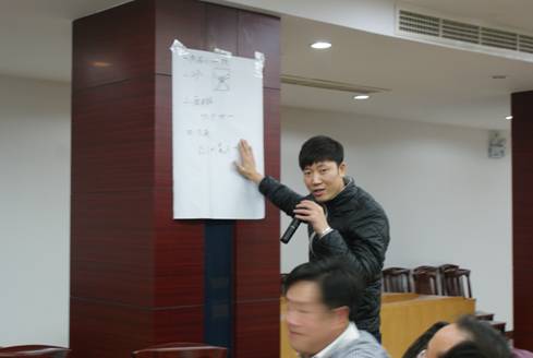 成国良老师的培训从“一滴水怎样才能不干枯?”的提问开始,将参培人员组成的四个团队引入到了培训的主题,培训中,成老师契合教材加入了互动及视频环节,以理论和启迪性互动游戏相结合,分别给大家讲授了团队意识、团队价值观、团队建设的方法、团队执行力等,成老师还使用管理矩阵图的办法列出了企业当前急需解决的五项执行力问题,并将如何解决封闭的问题作为“家庭作业”留给了每一位培训学员去思考。多元化的教学方法,深入浅出的引导学员发现问题,解决问题,总结问题,开发了学员的自主性及学习性,从而提高了学员对各自团队的归属感及认同感。培训气氛始终活泼、热烈。