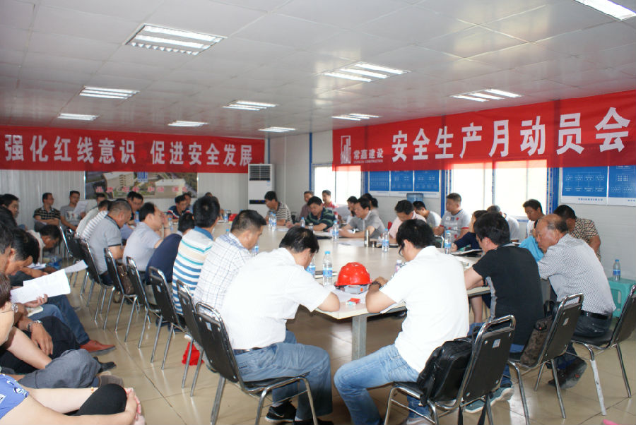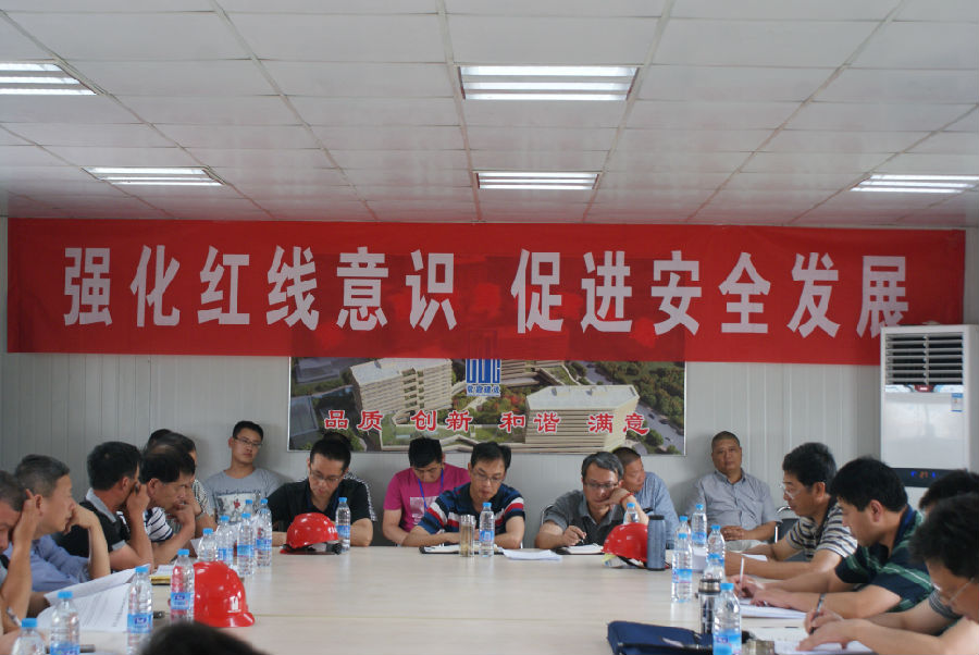 在施工现场会议室,安监部就公司1-5月份安全生产管理工作进行了通报,总结经验、分析不足;总工程师就创优工作进展及创优必备要素作现场通报;生产副总曹国平对公司整体生产情况和安全生产管理等作了汇报,对“安全生产月”活动开展作出具体部署,指出公司安全生产依然形势严峻,同时反复强调“安全重于泰山”的重要意义。