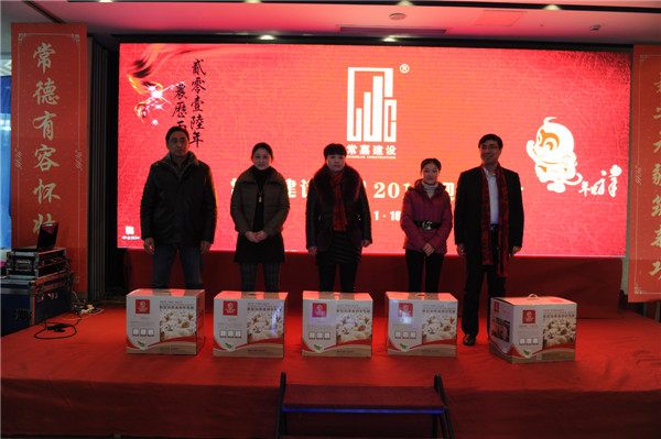 本届迎新年会特邀先进工作者、优秀项目经理家属走星光大道,接受全场祝贺,总经理李学鹏为优秀员工家属颁奖并合影留念。公司董事长殷云峰为退休职工现场赠送慰问品和慰问金并合影留念。公司员工自编自导自演了相声、小品、恶搞配音、歌曲串烧等丰富的演出节目,精美的视频剪辑、笑点十足的图片配合贴近建筑业与公司实际的原创段子,令全体参会人员忍俊不禁,笑逐颜开。活动现场,筹备组提前创建的员工微信群人气爆棚,董事长殷云峰及公司高管、项目经理的红包接龙引发一波波微信红包浪潮。