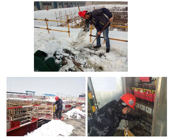 近期常州迎来了罕见的暴雪冰冻恶劣天气,又恰逢2017年春节的临近,为确保春节前公司安全生产无事故,安监部于近日对公司在建工程进行了安全巡查活动。重点对现场防冻防滑、临设加固、消防、临边洞口、临时用电、扬尘等方面进行检查,同时协助和指导项目部开展清雪行动,并在巡查过程中,对项目部提出如下要求:各项目部在恶劣天气中要专人值班巡查,发现隐患及时消除,在春节放假前各项目部对现场消防进行全面检查,确保节假日期间防火措施到位;所有私拉乱接电缆拆除,大中小型设备全部断电;现场易扬尘材料、裸土覆盖防尘网,大门口清理,防止节日期间扬尘投诉;所有建筑物通道口封闭,悬挂禁止通行标识等。