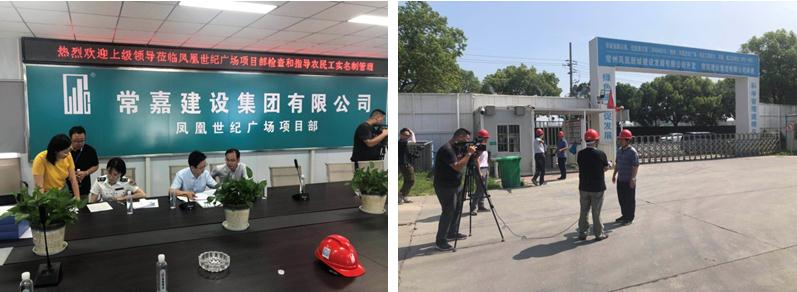 8月19日上午,由常州市人社局副局长刘晓东和市建管中心市场科科长邓小成共同带队,常州市根治拖欠农民工工资工作联合排查组一行,来到我公司凤凰世纪广场EPC项目现场进行检查指导工作。