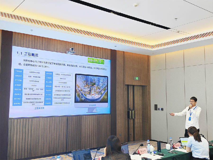 本次成果发布分 22 组同步进行,常嘉建设的《提高地下室外墙防水基层一次验收合格率》(发布人:王建军)和《研制一种竖向洞口护栏固定装置》(发布人:汪家豪),分别居第 10 组 2 号和第 2 组 2 号。发布前,两位发布人精心筹备,全程脱稿演讲,向与会专家及同行详尽介绍 QC 小组质量活动成果。历经复赛激烈角逐,最终分获一等奖和三等奖,充分彰显常嘉建设在行业高质量发展中的卓越管理水平。
