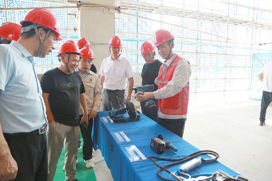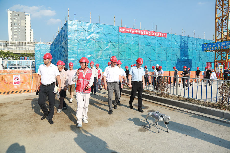 会后,全体与会人员听取了晋陵电力智慧能源产业基地项目的建设汇报,并深入施工现场进行观摩。本次观摩重点展示了项目在主体结构、二次结构、观感质量、成品保护、实测实量、机电安装等方面的扎实基本功与特色做法。同时,项目在智能化应用方面的成果,如智能电梯、智能机器狗安全巡检、无人机智能巡检、高空作业智能安全绳、机械设备自动报警器等智能建造应用场景,赢得了观摩人员的高度赞誉。