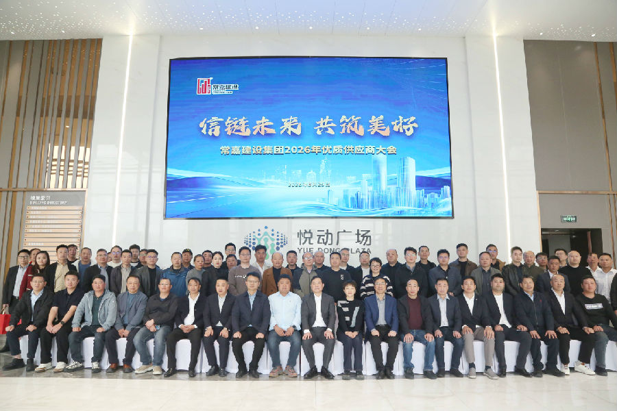 春意盎然,万象更新。3月29日,常嘉建设2026年优秀供应商大会在悦动广场创智大厦隆重举行,近百家核心供应商代表与集团管理层齐聚一堂,共叙情谊、共话新篇。本次大会以“信链未来 共筑美好”为主题,既是年度合作总结与展望,更是集团在行业调整期,携手伙伴打破“点对点”模式,构建“合规、有序、共赢”产业生态的关键举措。