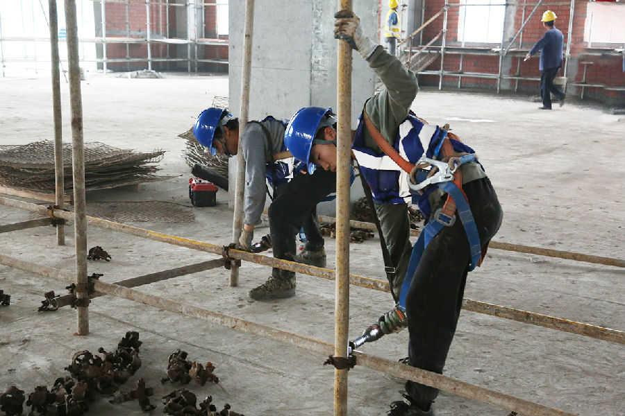 最具挑战性的架子工比赛,考验着选手的速度与规范。在模拟高空环境下,选手们身系安全带,灵活穿梭于钢架间,精准控制立杆间距与扣件扭矩,规范设置剪刀撑与连墙件,在追求效率的同时筑牢安全防线,完美践行“安全是建筑生命线”的理念。