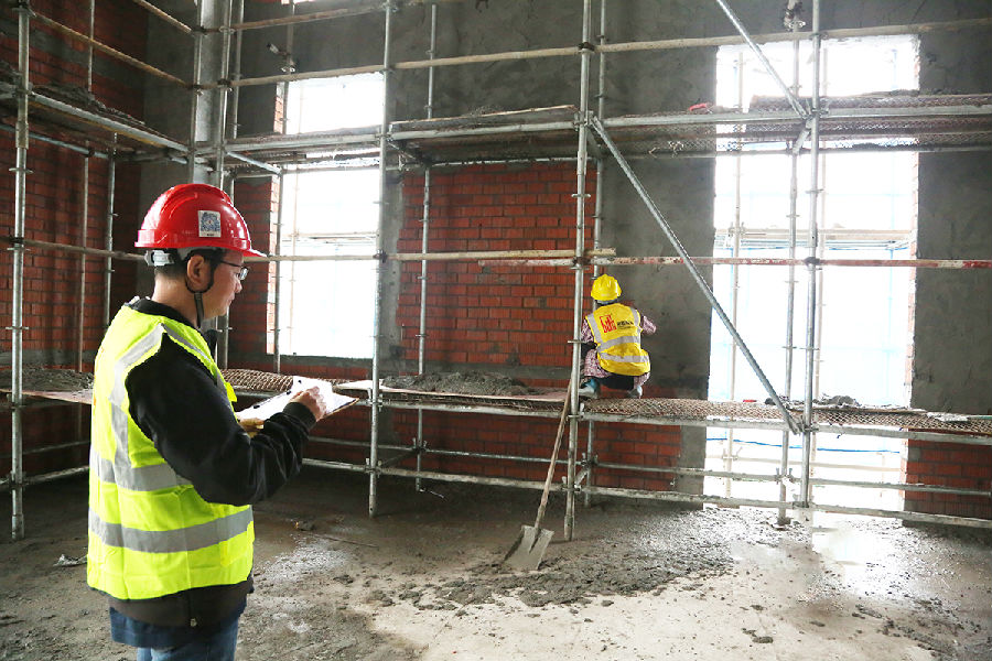 粉刷工需独立完成从基层处理、挂网冲筋到面层抹灰的全流程。选手们手持抹刀行云流水,将粗糙墙体化作平整光滑的“镜面”效果。经专业靠尺检测,墙面平整度误差远低于行业标准,尽显“三分料,七分工”的精湛技艺。